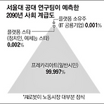 위 사진은 서울대 공대 연구팀이 예측한 2090년 사회 계급도입니다. 우리는 점점 로봇, 인공지능에 의해 지배를 당할 것이고, 이로 인해 일자리도 점점 줄어들 것이라는 전망인데요. 현재 인건비는 점점 늘어나고 있으며, 인건비를 감당하지 못하는 사업주들은 무인 계산기를 도입하고 있습니다. 주민센터에 가보면 아시겠지만... 이제 등본, 초본 등 간단한 업무는 무인발급기가 대신합니다. 이미 많은분들께서 체감하고있지 않으실까 싶은데요. 절대 짤리지 않는다는 공무원도 10년 후에는 장담할 수 없으며, 김영란법 도입은 이를 뒷받침하고 있습니다. 이제 우리에게 안정적인 직장은 없습니다. 직장만 다니는 것이 가장 큰 위기일 수 있습니다. 이제는 나만의 플랫폼을 만드셔야 합니다. 나만의 플랫폼을 제대로 만들려면 어떻게 ..